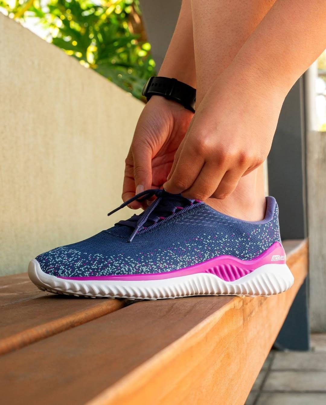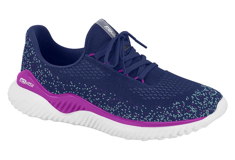 Na embalagem, o consumidor recebe um par de tênis ActVitta Cobalto na cor azul com detalhes em rosa, disponível em diversos tamanhos para melhor adequação.