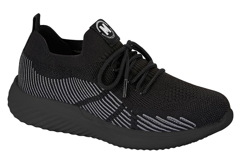 O tênis possui cabedal em tecido knit que se ajusta ao pé, garantindo boa ventilação e leveza. A sola de borracha preta é resistente, oferece aderência e segurança nas caminhadas e brincadeiras. O fechamento é com cadarço para melhor ajuste e fixação.